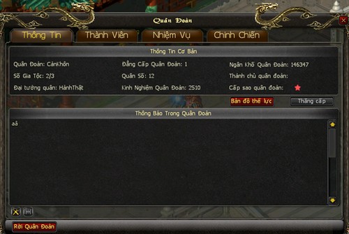 - Tại phần thông tin chung, có thể thấy được thông báo quân đoàn do đại tướng quân soạn ra.