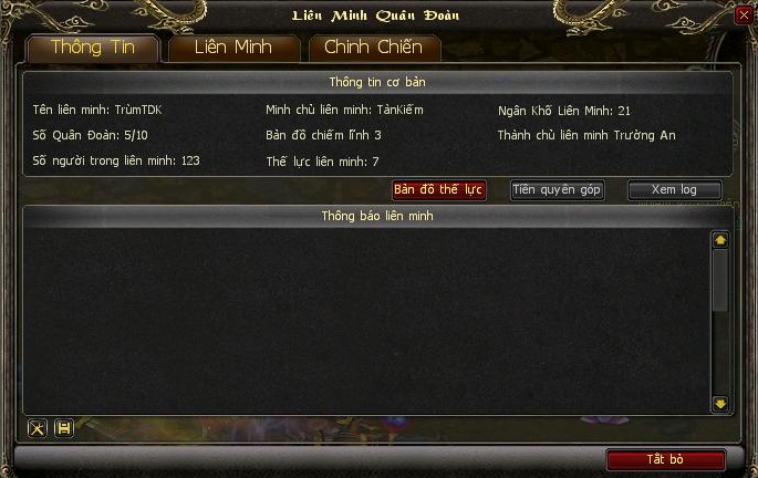 - Minh Chủ có thể viết thông báo cho toàn liên minh ở phần thông tin