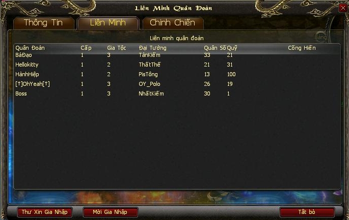 - Minh Chủ Liên Minh: Tên Quân Đoàn Trưởng của Quân Đoàn đứng ra lập Liên Minh