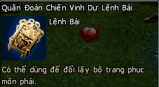- Tham gia Quân Đoàn Chiến còn đạt được Quân Đoàn Chiến Vinh Dự Lệnh Bài, vật phẩm cần thiết để đổi trang bị Hoàng Kim.